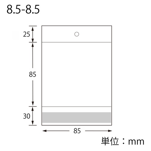 厚0.03×幅85×長さ85+ヘッダー25+テープ30mm/穴径:8mm