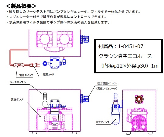 ●付属品:真空ホース1m(外径φ14mmホースニップル用)×1本