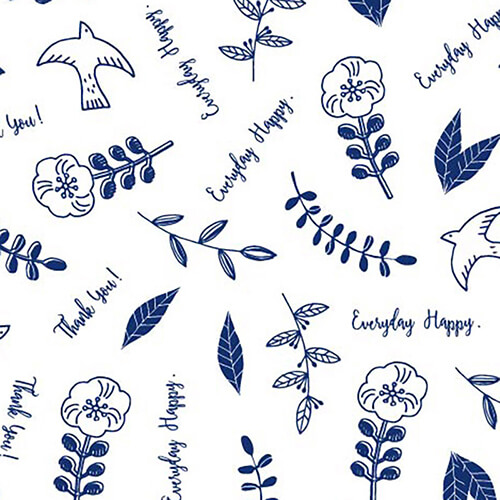 材質は純白ロール紙35gで、色は白地に紺の小鳥と花が散りばめられています。