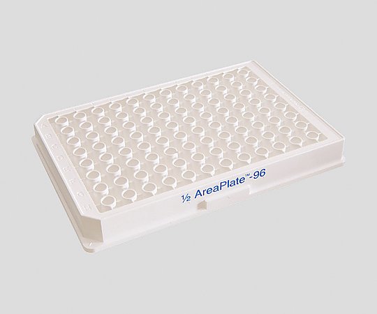 ●1/2AreaPlateは、ウェルの表面積とボリュームが通常の96ウェルの1/2に設計され、試薬などの使用量を少なくすることができ、アッセイの少量化に適しています。