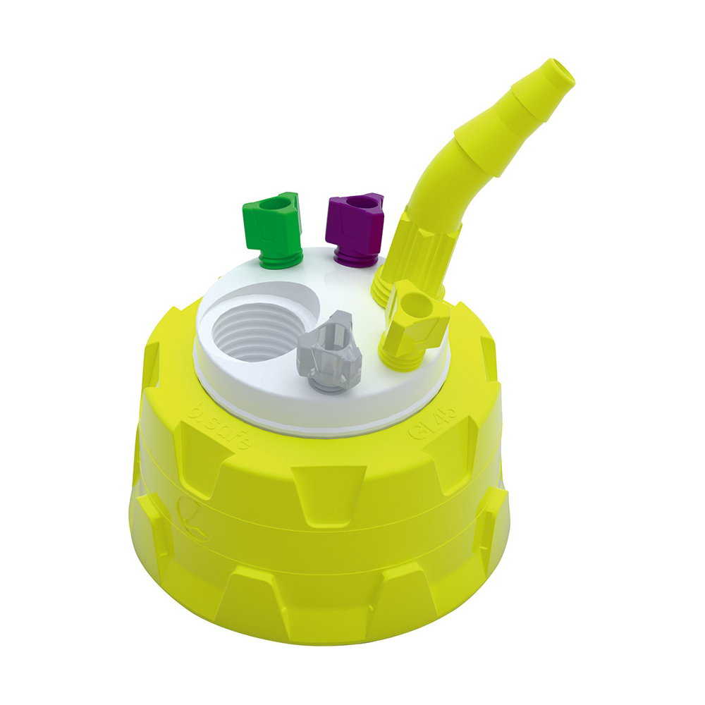 ●ネジ口:キャップ/GL45、排気フィルター用ポート/GL14、内径φ5.5~8mmチューブ用フィッティング用ポート/NTP 1/8"、チューブ用フィッティング用ポート/UNF 1/4"
