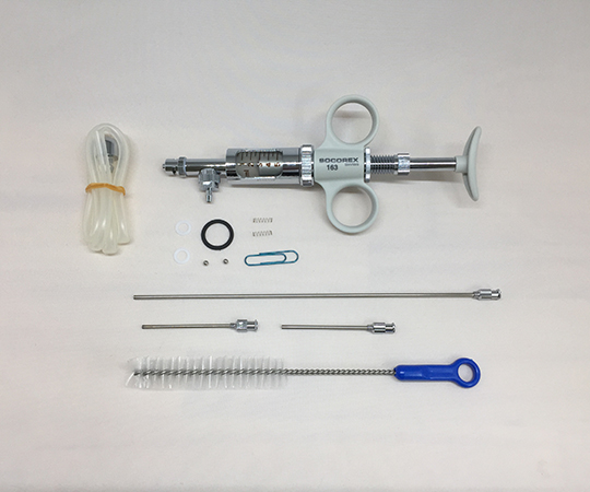 ●構成内容:連続分注器、ニードルS・L・LL各1本、メタルシンカー付きシリコンチューブ、スペアパーツセット、バレル洗浄用ブラシ