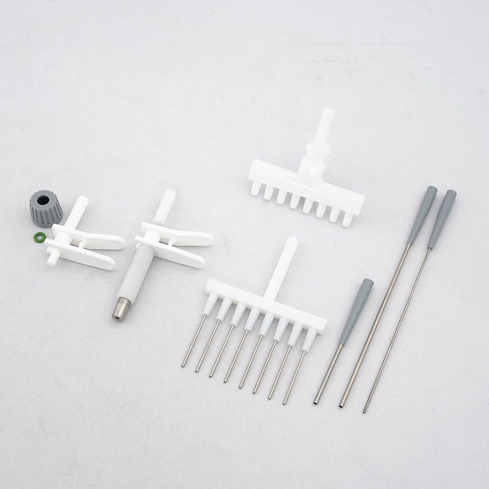 ●付属品:2Lボトル・チューブコネクタ付きキャップ・ハンドオペレーター・ボトル用アダプター・1chニードル(φ2.5×40mm、φ2.5×120mm各1本)・1chニードル(φ1.5×40mm、φ1.5×120mm各1本)・8chニードル(φ1.5×1本)・8chチップアダプター(200uL用×1本)・1chチップアダプター(200uL用、1mL用各1本)・フィルター・接続用シリコンチューブ