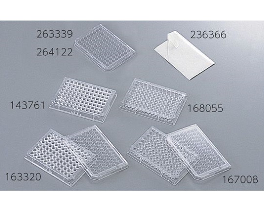 ●材質:マイクロプレート/PS(ポリスチレン)(表面/Nunclon(TM)Delta処理)、フタ/PS(ポリスチレン)