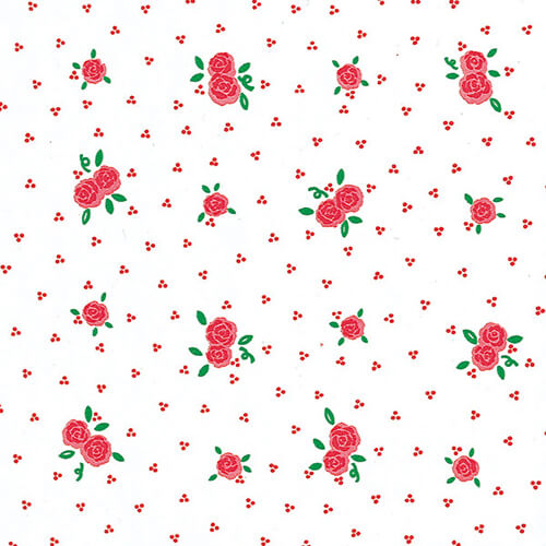 サイズが757×530mmの包装紙。材質は上質紙60gです。白地に小さな赤いバラの花が散りばめられた可愛いデザイン。リボンやギフトシール、ショップラベルで簡単にアレンジもできます。雑貨店や洋菓子屋さんなどにおすすめの商品です。ギフトボックスなどのラッピングにいかがでしょうか。