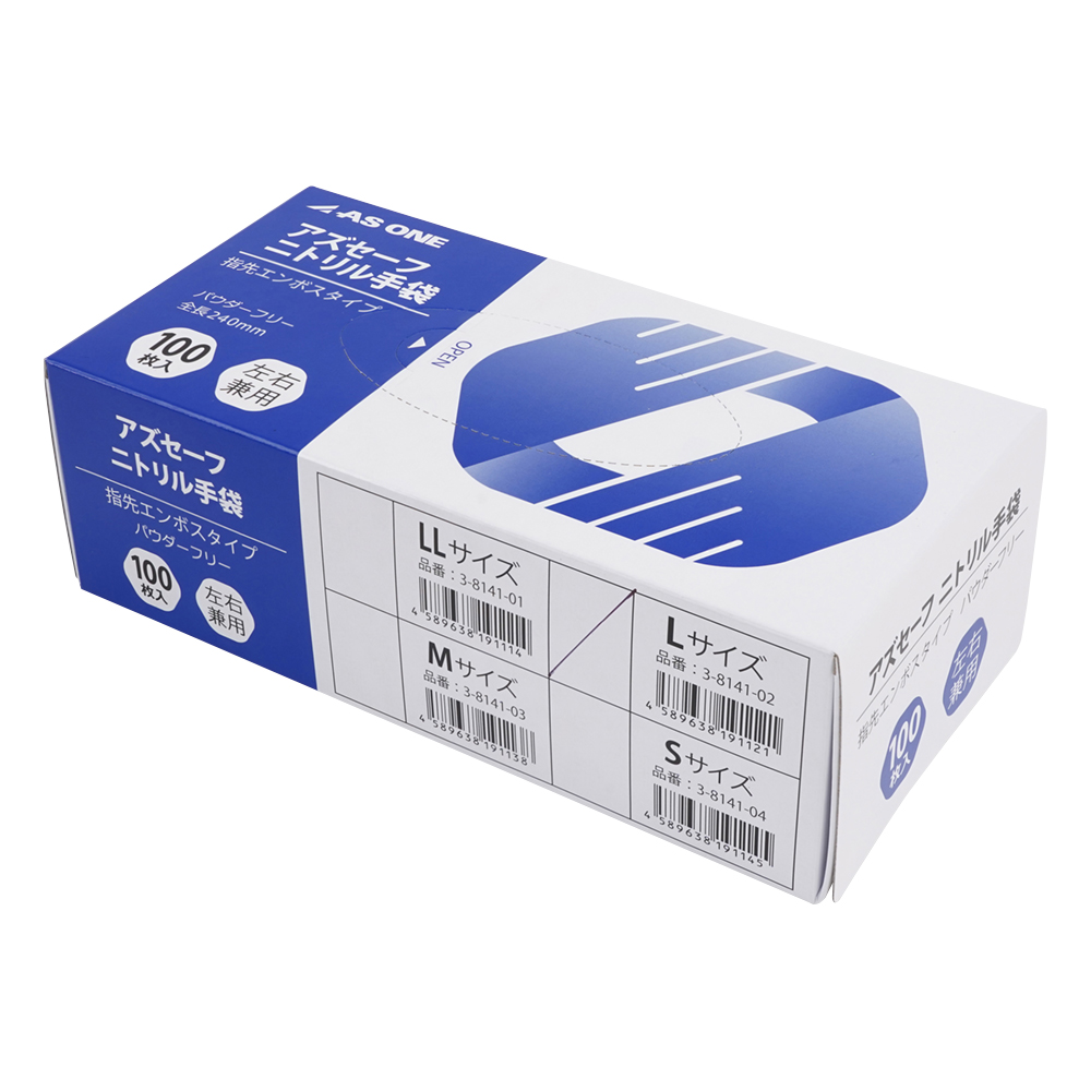 ●*本製品は【3-8141-02(アズセーフニトリル手袋青(指先エンボス)Lサイズ100枚入)×20箱】のケース販売用の品番となります。