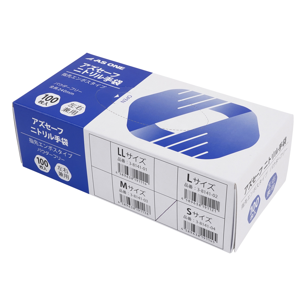 ●*本製品は【3-8141-04(アズセーフニトリル手袋青(指先エンボス)Sサイズ100枚入)×20箱】のケース販売用の品番となります。