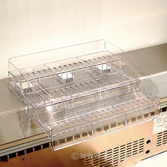 ●セット内容:本体・仕切板×2枚・背板×1枚●開口対面ケースやセミ多段ケース天面へ設置します。●マグネットを使用し、突き出し使用が可能です。●置き型スタンドタイプでも使用でき、連結も可能です。