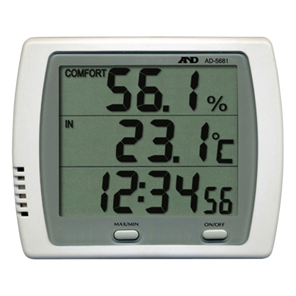 ●▼時計機能付き温湿度計