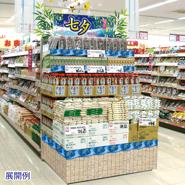 かんたんロール幕 七夕は、七夕売場やイベントスペースを手早く演出できる優秀アイテムです。ぜひ短冊や笹と一緒に飾って、来場者の願いごとを彩りましょう。