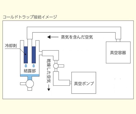 ●水分を多く含むサンプルの真空乾燥時に、ポンプへ水蒸気流入を防ぐための冷却トラップです。