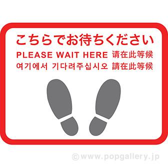 フロアシール 四角(小)「こちらでお待ちください」(5ヶ国語)