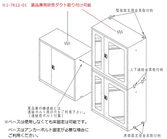 ●扉は左右別サイズですので、左側には保存品を収納し右側には使用頻度の高い薬品を入れることで使い分けできます。