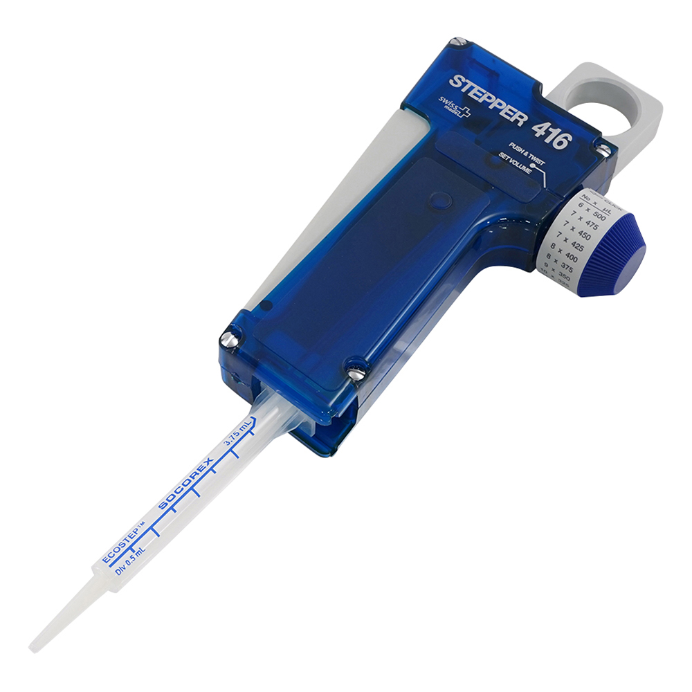●付属のステッパーつまみ・分注シリンジを交換するだけで、幅広い分注容量に対応します。