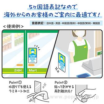 ●日本語・英語・中国語(簡体字)・中国語(繁体字)・韓国語●水回りでも使えるラミネート加工。●のり残りの少ない再剥離仕様。