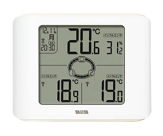 ●温度、湿度に加え、簡易熱中症注意レベル、インフルエンザ注意レベルが分かります。