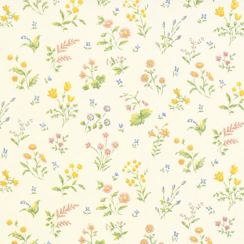 クリーム地に野辺や山間(やまあい)に咲く小さな花々をモチーフにした優しい色合いのデザイン。