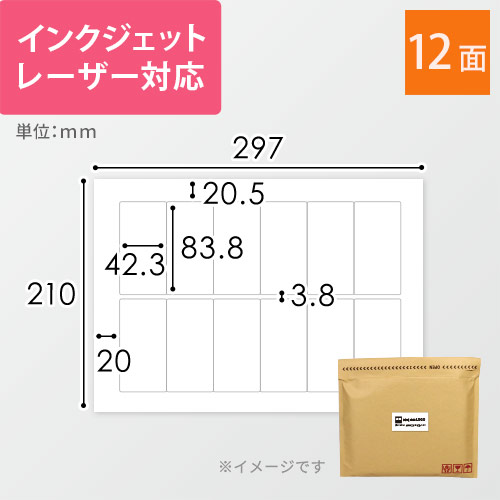 | サイズ | A4 1シート12面付(83.8×42.3mm) |