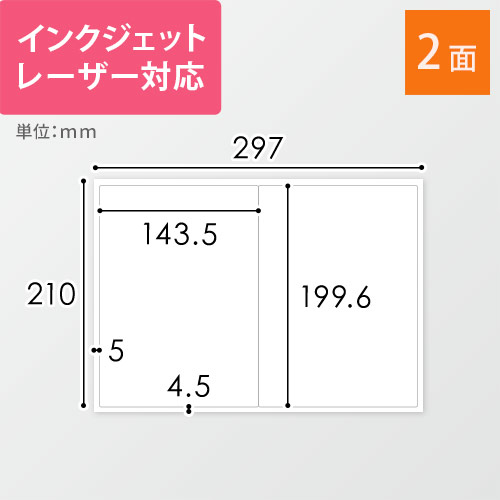 | サイズ | A4 1シート2面付(143.5×199.6mm) |