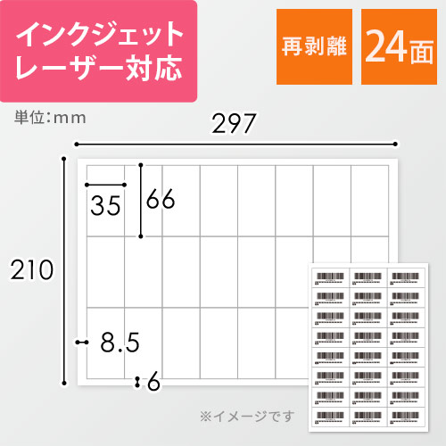 | サイズ | A4 1シート24面付(66×35mm) |
