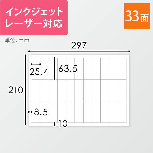 | サイズ | A4 1シート33面付(25.4×63.5mm) |
