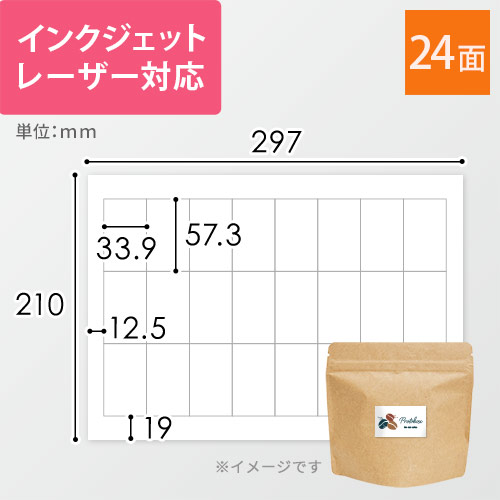 | サイズ | A4 1シート24面付(57.3×33.9mm) |