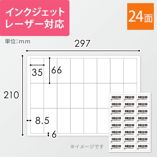 一片のサイズは66×35mmで、A4用紙サイズの台紙1枚で計24枚作ることが可能です。