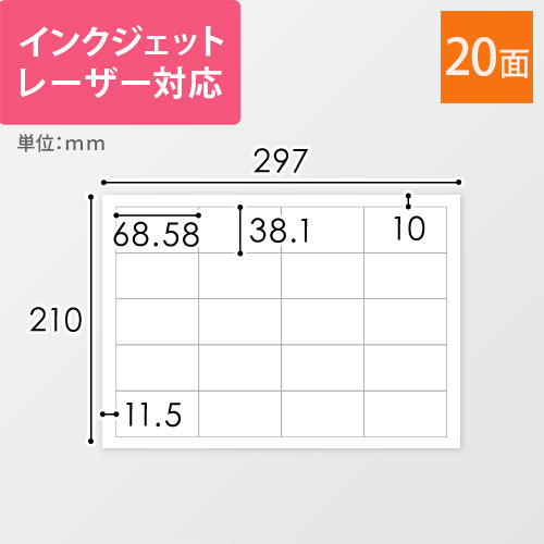 | サイズ | A4 1シート20面付(38.1×68.58mm) |