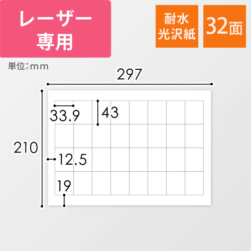 | サイズ | A4 1シート32面付(33.9×43mm) |