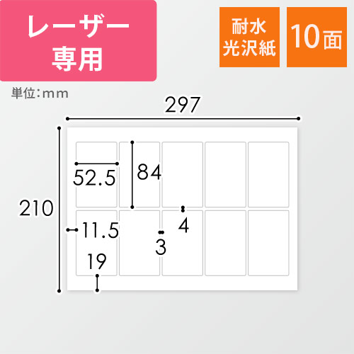 | サイズ | A4 1シート10面付(52.5×84mm) |