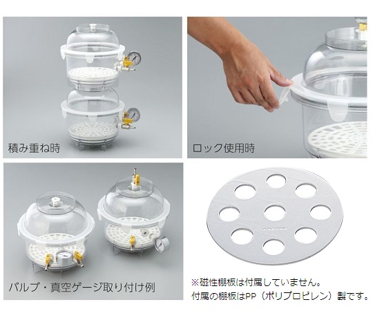 ●シリカゲル皿が付属しており、常圧用デシケーターとしても使用できます。