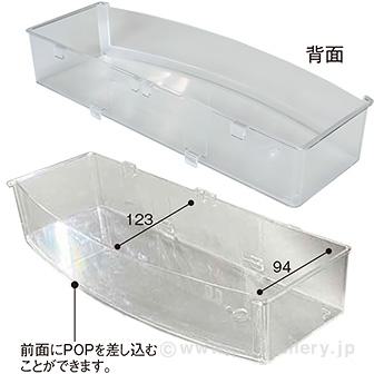 ●耐荷重:2kg●トレー内寸:W336×D94~123mm●50mmピッチのネット用●POPサイズ:H55×W339mm●透明なので、商品パッケージを見せたいアイテムにおすすめです。●前面にPOPを差し込むこともできます。