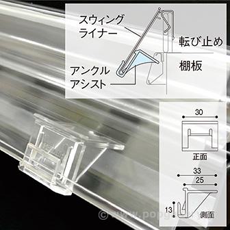●推奨取付け数 3尺:2ヶ以上、4尺:3ヶ以上●什器の仕様により角度が上がらない場合があります。●下部POP表示の角度を上げて見やすく改善!