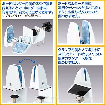★ボードホルダー内側に透明クッションが付いており、アクリル板など挟むものを傷つけません。
