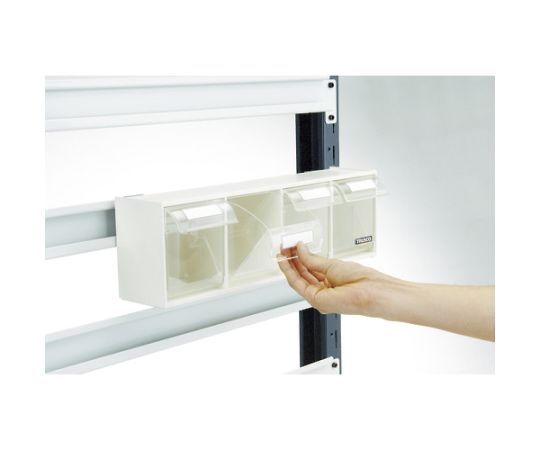 ●専用金具を使って、軽量ビンラックやパンチングパネルラックに取り付けできます。