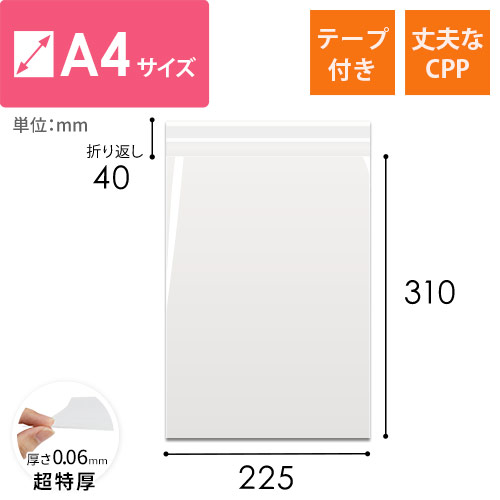 「CPP-A4T-06」は、A4サイズ対応のテープ付きCPP袋です。