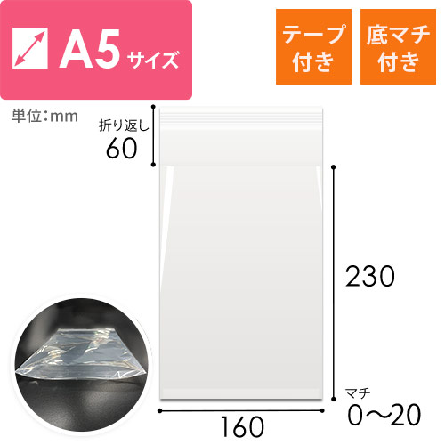 | サイズ | 幅160×長さ230×底マチ20+折り返し60mm |