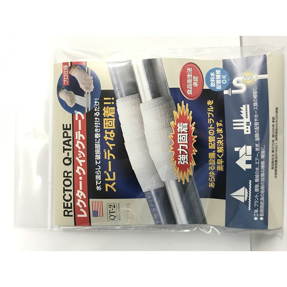 ●濡らして巻きつけるだけで強力固着(約3分で固着・約20分で硬化)し配管パイプの補修・補強が可能です。