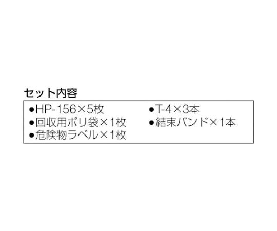 ●内容物:HP-156×5枚、T-4×3本、回収用ポリ袋×1枚、結束バンド×1本、危険物ラベル×1枚