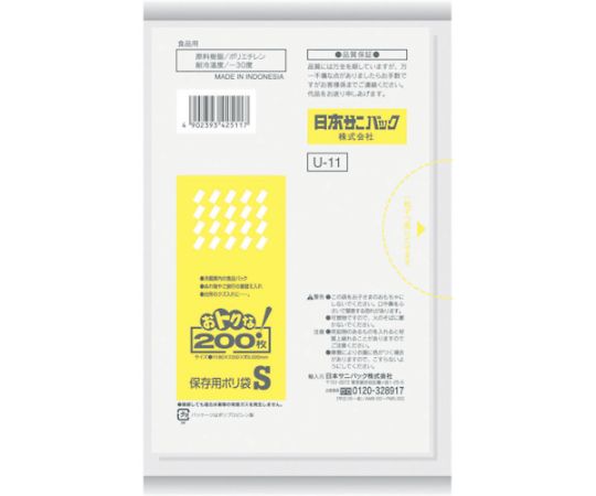 U-11おトクな!保存用ポリ袋S透明 200枚