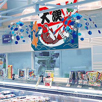 ●上部ひも付●1点吊りで放射状に広がります。●鮮魚売り場へは通年ご使用いただけます。