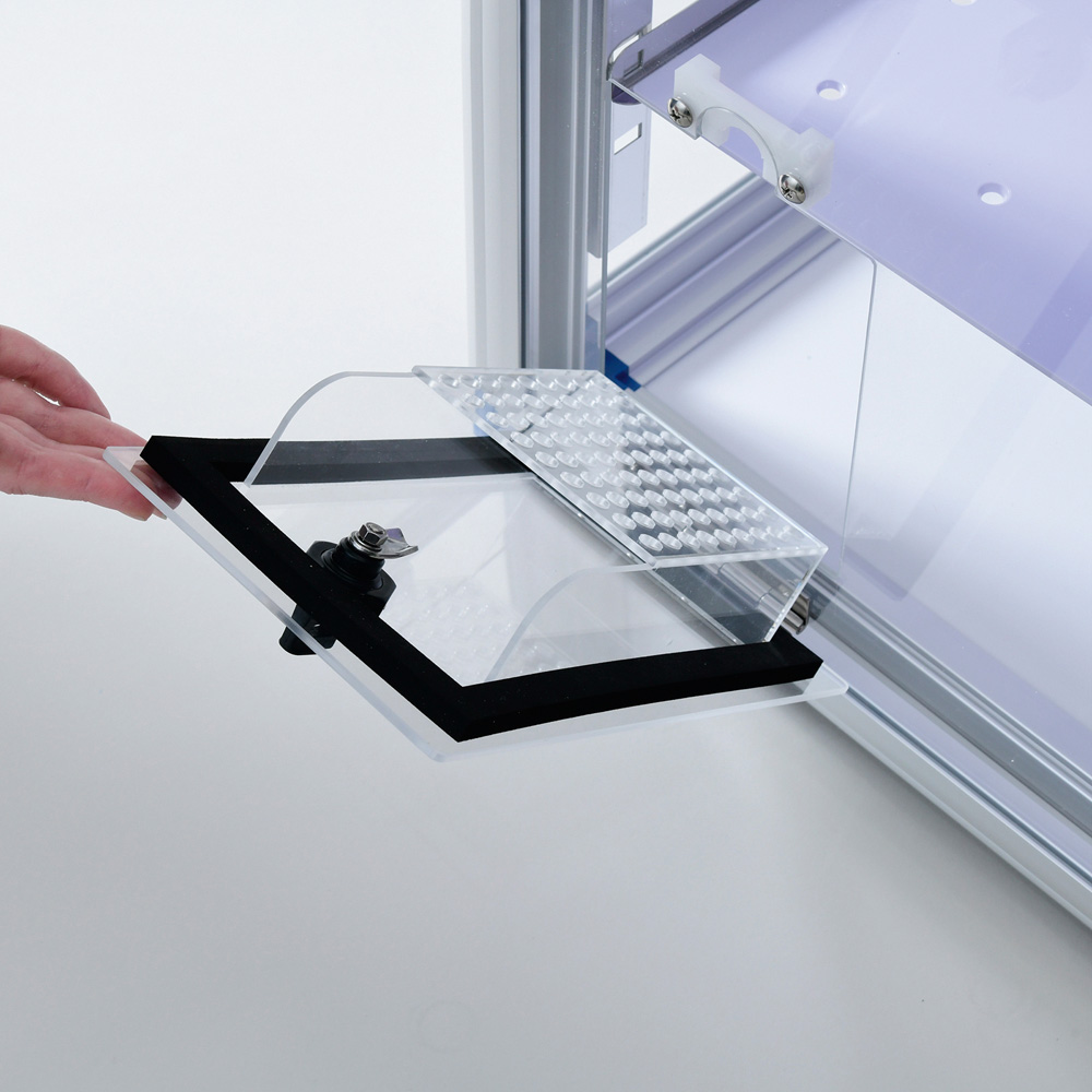 ●除湿剤交換時の外気開放面積が小さく、庫内の湿度への影響を抑えます。