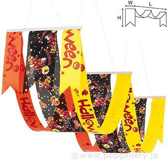 ●上部テグス付●柄や質感、カラーの異なる生地を組み合わせたペナント!(メタリックインク×サテン生地、ハロウィン柄×ポンジ生地)