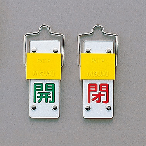 スライド式バルブ開閉札(回転タイプ) 「開(緑) 閉(赤)」 特15-43A