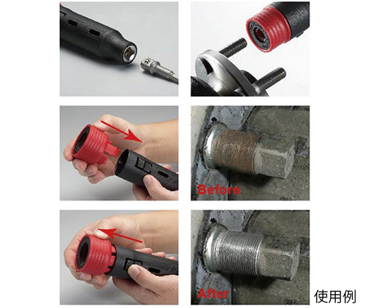 ●インパクトドライバー等に装着して、ボルト・シャフトの錆取りに使用できます。