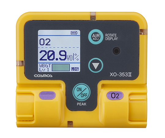●付属機能:電池残量表示、ピークホールド機能、積算濃度表示機能、液晶表示反転機能、警報履歴機能、ガス警報以外の警報機能(積算濃度、センサ異常、電池残量、エアー調整不良)、データロギング機能(NFCによるデータ読み出し)、暑さ指数表示機能(WBGT値を色で識別)