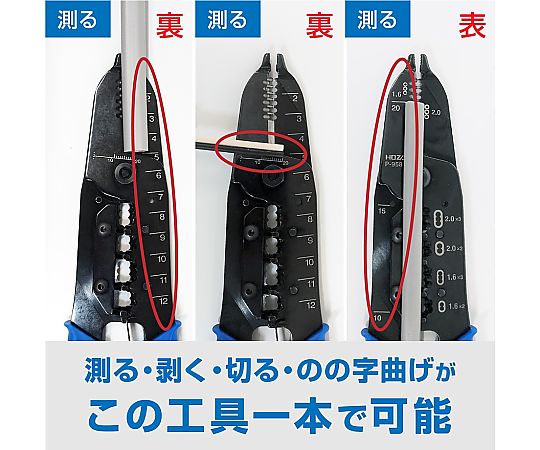 ●「測る」「剥く」「切る」「のの字曲げ」作業がこの工具一本で可能です。