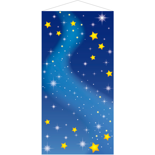 天の川タペストリー(防炎加工)は、七夕売場やイベントスペースを手早く演出できる優秀アイテムです。ぜひ短冊や笹と一緒に飾って、来場者の願いごとを彩りましょう。
