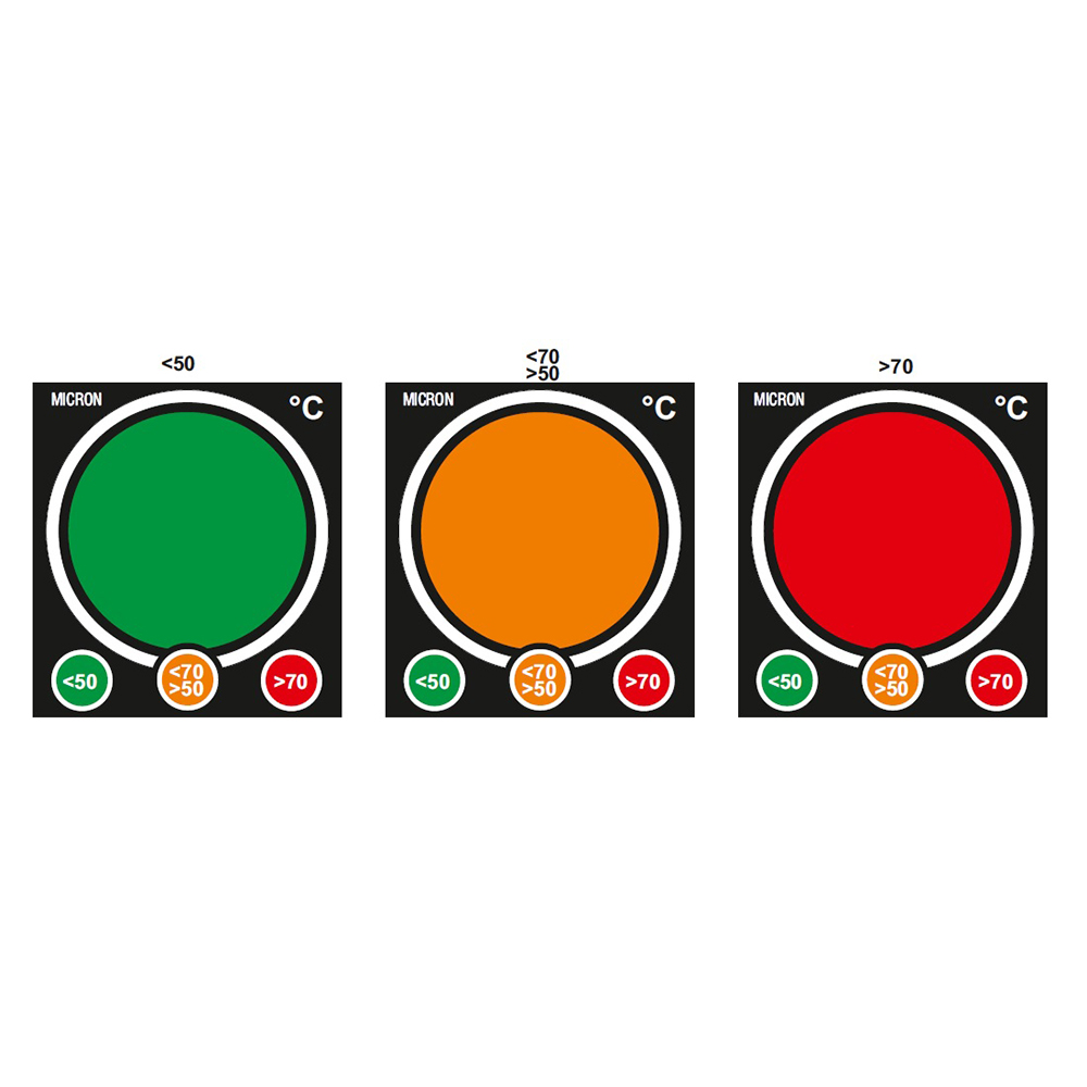 ●温度レンジ:50℃以下:緑 50℃~70℃:黄 70℃以上:赤