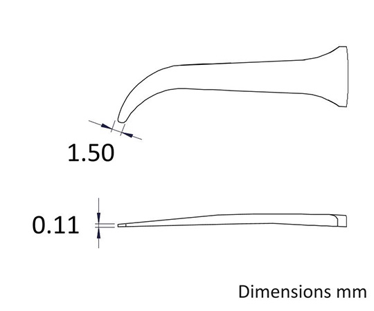 ●先端寸法: 先端幅(mm)= 1.50 先端厚さ(mm)= 0.11